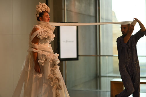 La performance se adapta en texto, tiempos y desarrollo según el espacio y el ambiente en que se presenta. El diseño del vestido siempre es distinto.